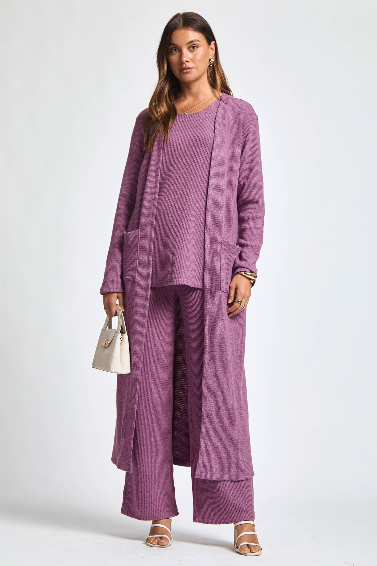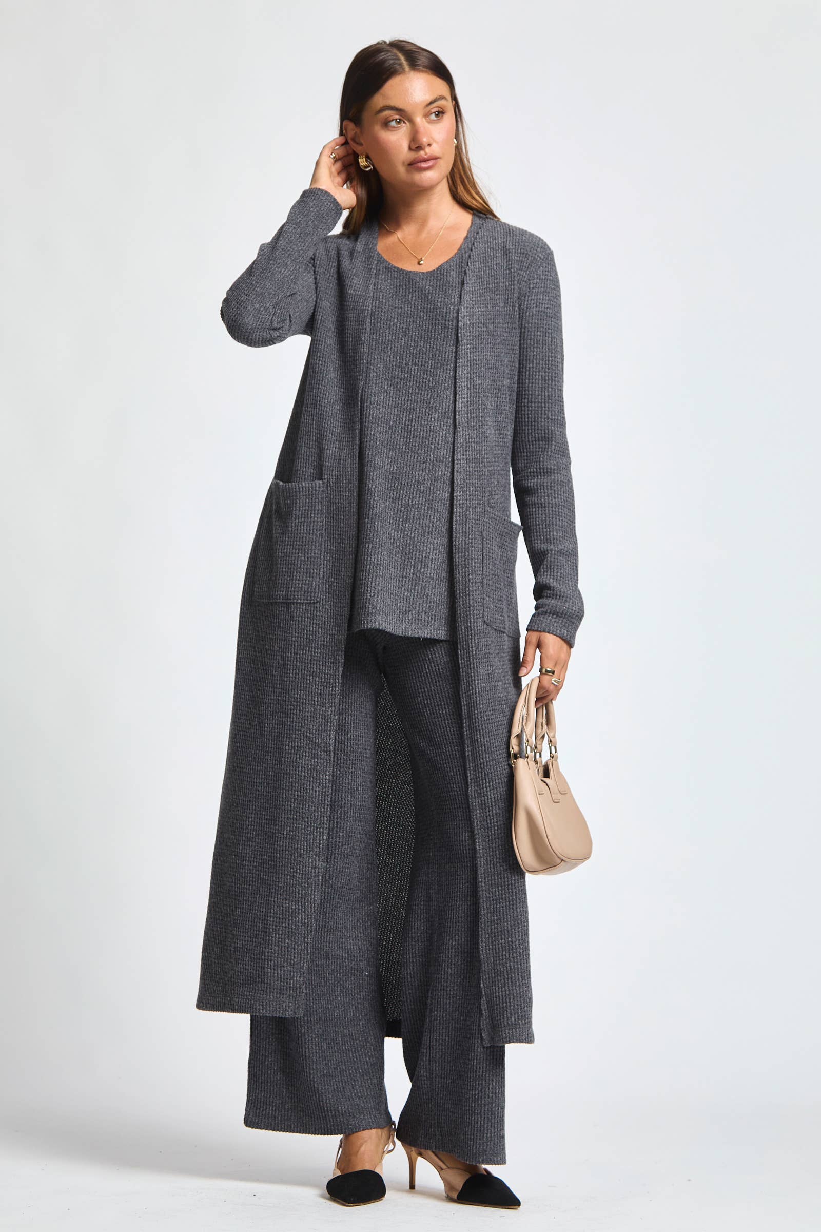 Dear Scarlett - Thermal Sleeveless Tank + Cardigan + Relaxed Pants