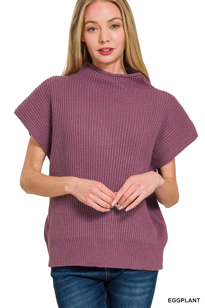 POWER SHOULDER MOCK NECK SWEATER - BEST QUALITY SWEATER - LOW GAUGE HEAVYWEIGHT - MOCK NECK - POWER SHOULDER SHORT SLEEVE TOTAL BODY LENGTH: 23", CHEST: 42" approx. - MEASURED FROM SMALL ** COLOR MAY VARY SLIGHTLY DUE TO MONITOR RESOLUTION