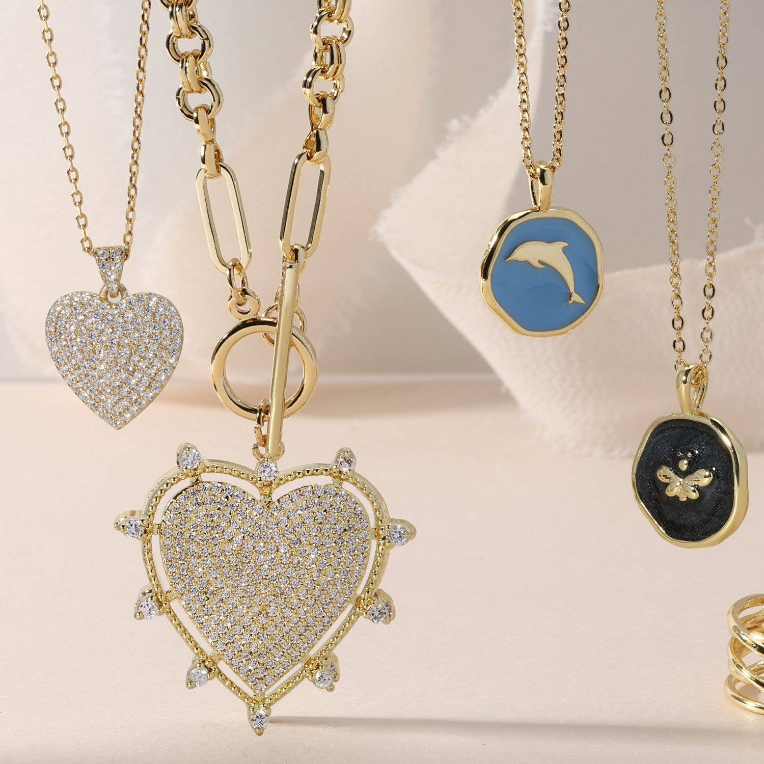 Splendid Iris - Large Pave Toggle Heart Necklace
