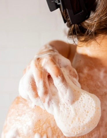 - Wet sponge under warm running water and gently squeeze to form a creamy lather.