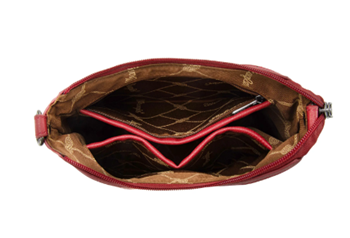 - Inside of the bag includes a zippered pocket and an open pockets